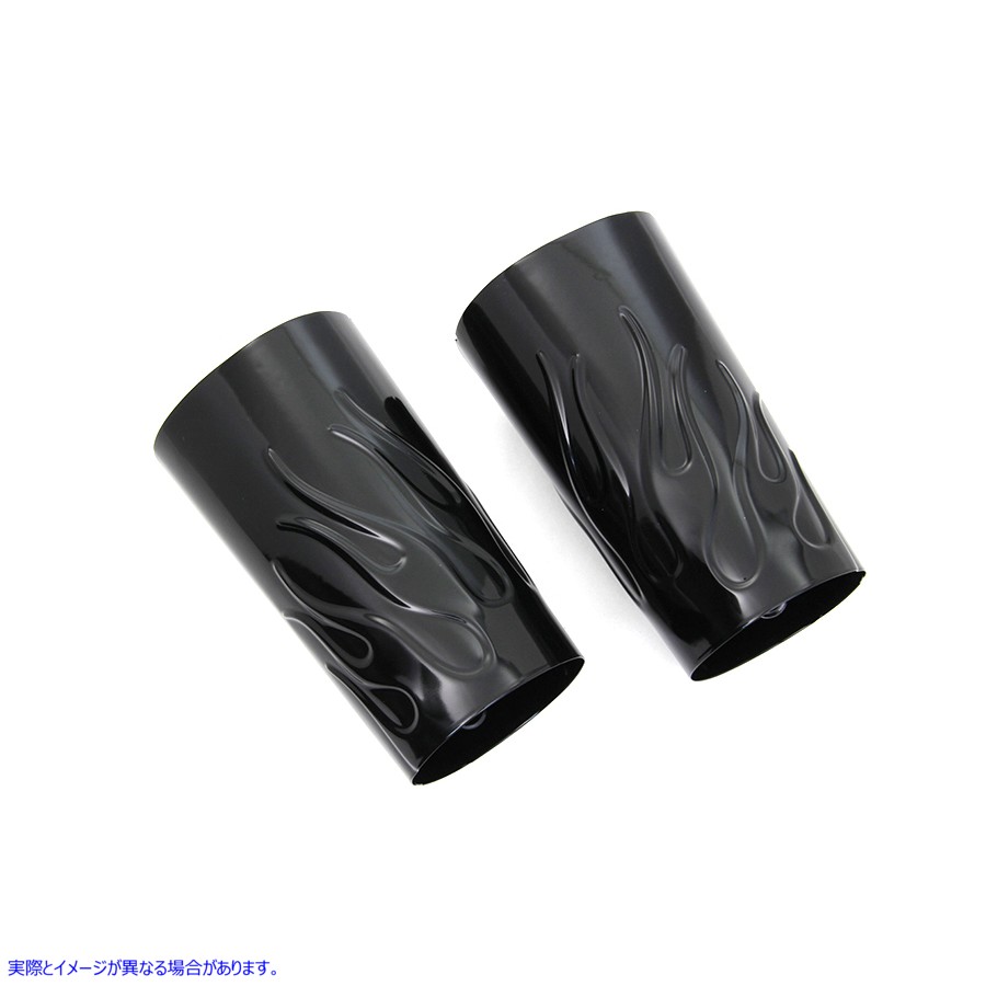 炎スタイルのフォークチューブカバーセットは、黒い仕上げが特徴です。
