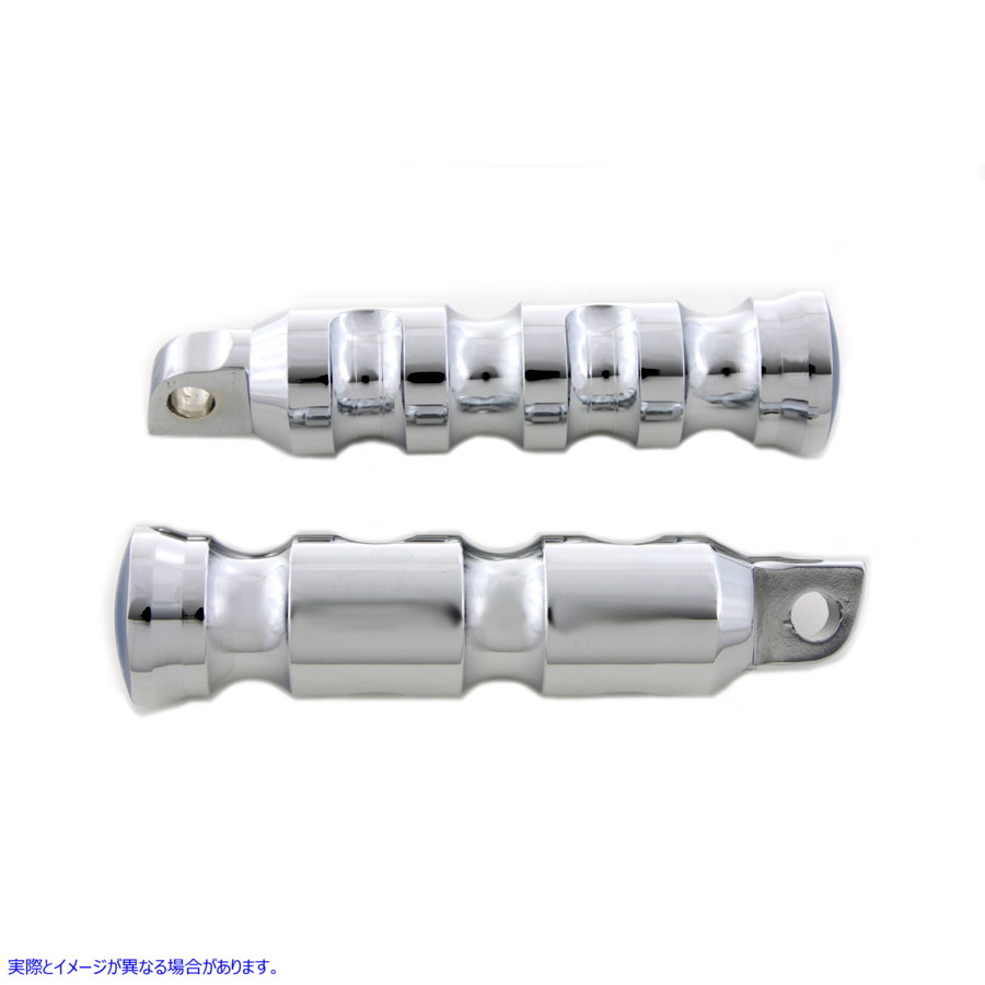 Chrome contour grooved footpeg set. Set of two. *NOTE: These will not fit passenger on 2018-up Softail models.Bolts available separately; V-Twin #37-0020 chrome bolt set and #37-1679 zinc bolt set.