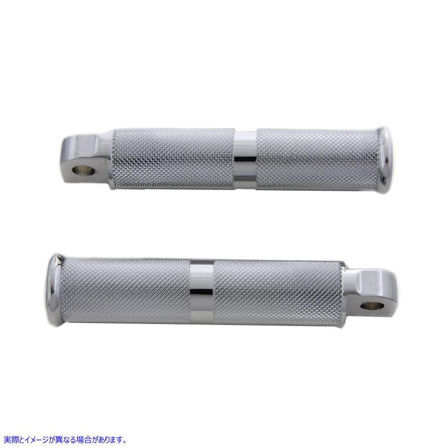Chrome hollow knurled footpeg set. *NOTE: These will not fit passenger on 2018-up Softail models. Bolts available separately; V-Twin #37-0020 chrome bolt set and #37-1679 zinc bolt set.