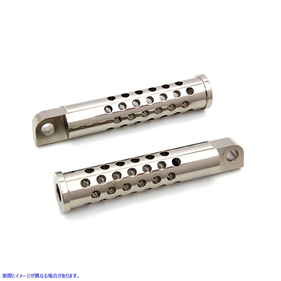 シューティングゲームスタイルのペグをフィーチャーした男性エンドマウントビレットフットペグセットはニッケルメッキです。マッチングシュータースタイルのシフターペグが利用可能です。