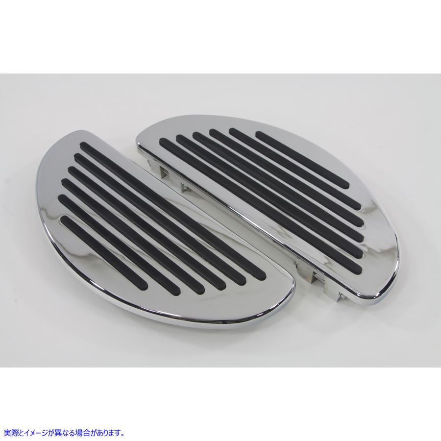クロムビレットハーフムーンフットボードセットは、レールデザインの黒い成形ラバーインサートを備えています。