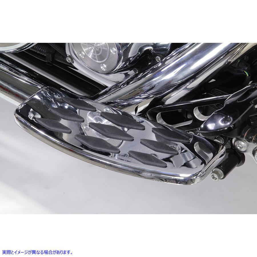 Chrome Billet 'D'型のフットボードセットは、ダイヤモンドデザインの黒い成形ラバーインサートを備えています。