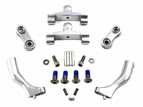 Adjustable passenger footboard mount set has a chrome finish. This is a mount set only. Order footboards and mats separately.