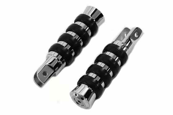 Female end mount footpeg set features small diameter pegs with heavy duty flat rubber rings and tapered caps. For use on 5/8 inch square peg mount.