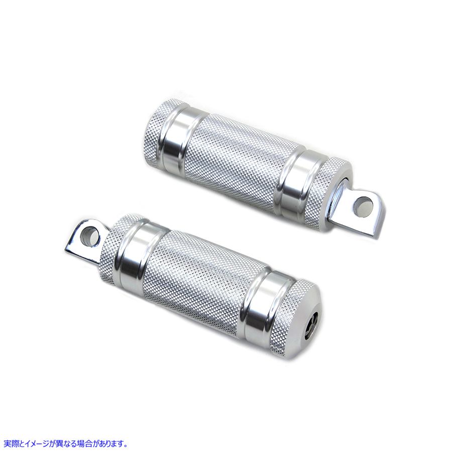 Billet aluminum large diameter male mount footpeg set with four groove design features a silver anodized finish. Set of two. *NOTE: These will not fit passenger on 2018-up Softail models.Bolts available separately; V-Twin #37-0020 chrome bolt set and #37-1679 zinc bolt set.