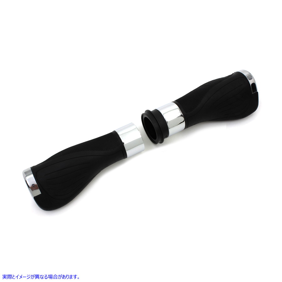 グリップセットは黒で、ワイヤーインチアプリケーションによるインチスロットル用のクロム端があります。ペアとして販売されています。