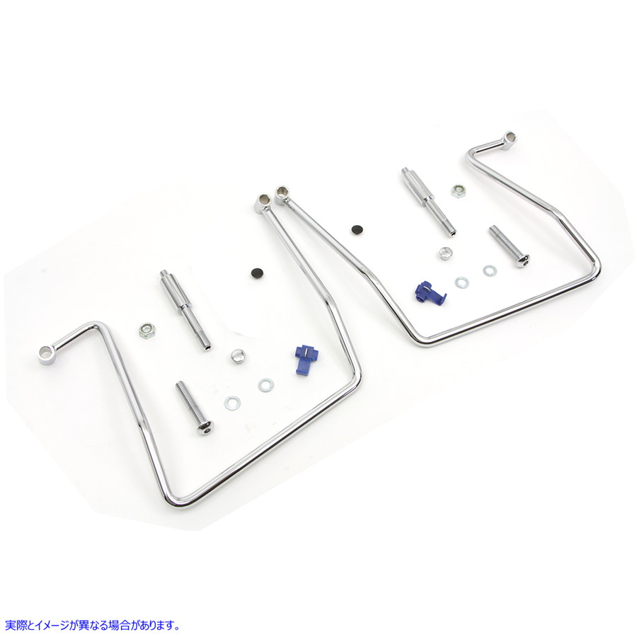 2ボルトサドルバッグサポートキットクロムは、フェンダーストラットの輪郭に合わせて、ブレーキキャリパーとスイングアームからバッグを保護するように設計されています。