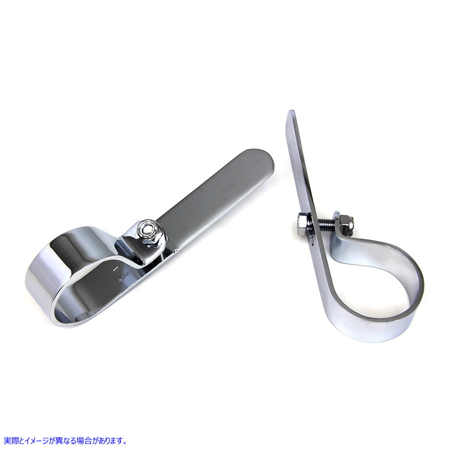 ユニバーサルタイプの取り付けを可能にする長いフラットサイドストラップを備えた1-3/4インチスタイルの排気クランプセット。クロム仕上げが特徴です。