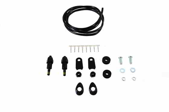 OE chrome turn signal relocation kit is required on FLS and FXS models when installing detachable one piece sissy bars and luggage racks. Includes all necessary hardware for relocation turn signals.