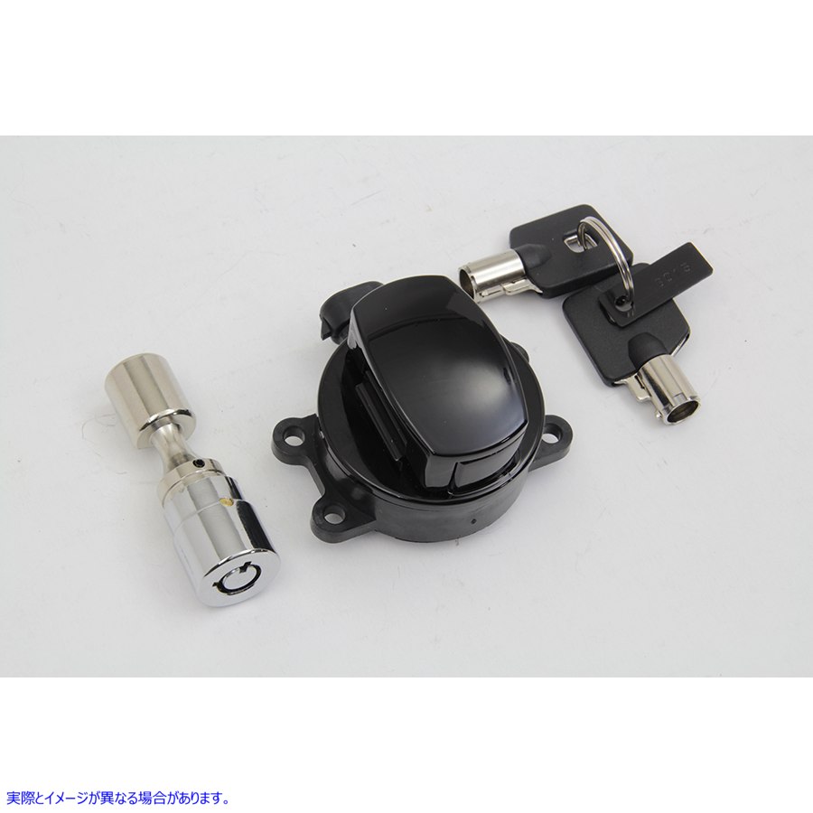 キーとネックロックピンを備えたグロスブラックイグニッションスイッチ。