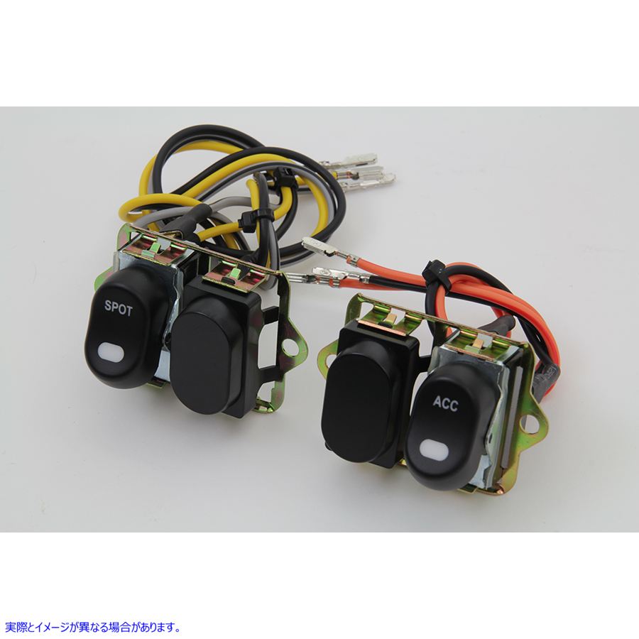 LEDインジケーター付きのBlack Fairing Rockerスイッチ。キットは、SpotlampとAccessoryスイッチのみを含む4つのスイッチ構成を備えています。