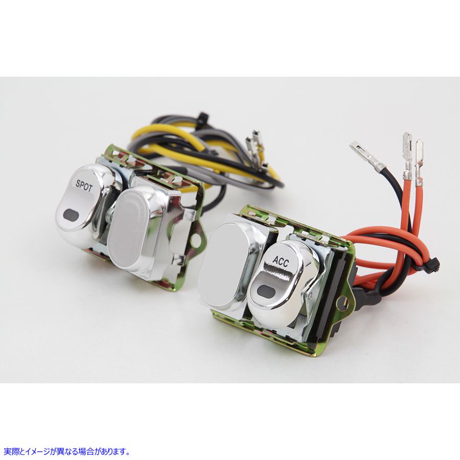 LEDインジケータ付きChromeフェアリングロッカースイッチ。キットは、SpotlampとAccessoryスイッチのみを含む4つのスイッチ構成を備えています。