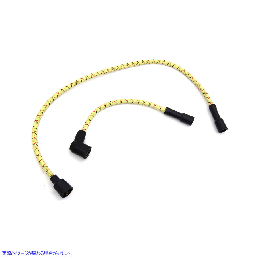 Sumax spark plug wire set is yellow with a black and red tracer. A combination Kevlar Helically Spiral Wound Core at 350 ohm per foot resistance delivers greater spark energy while improving power idle and fuel efficiency. Cloth jacket is rated at 450°F and resists heat oil and abrasion. These ires will work on all models with point or electronic ignitions. Set includes 21-1/2 inch lead with 180° plug boot & 180° coil boot as well as 9 inch lead with 180° plug boot and 90° coil boot.