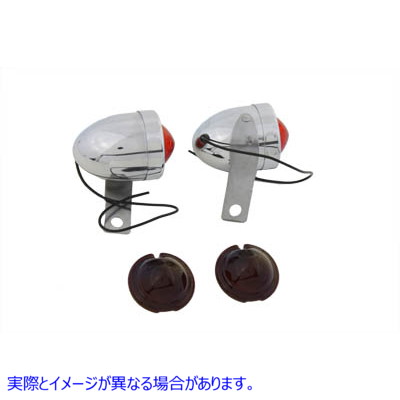 クロムランプセットは、ブラケットが取り付けられた1-3/4インチの丸いランプと赤いガラスレンズを備えています。