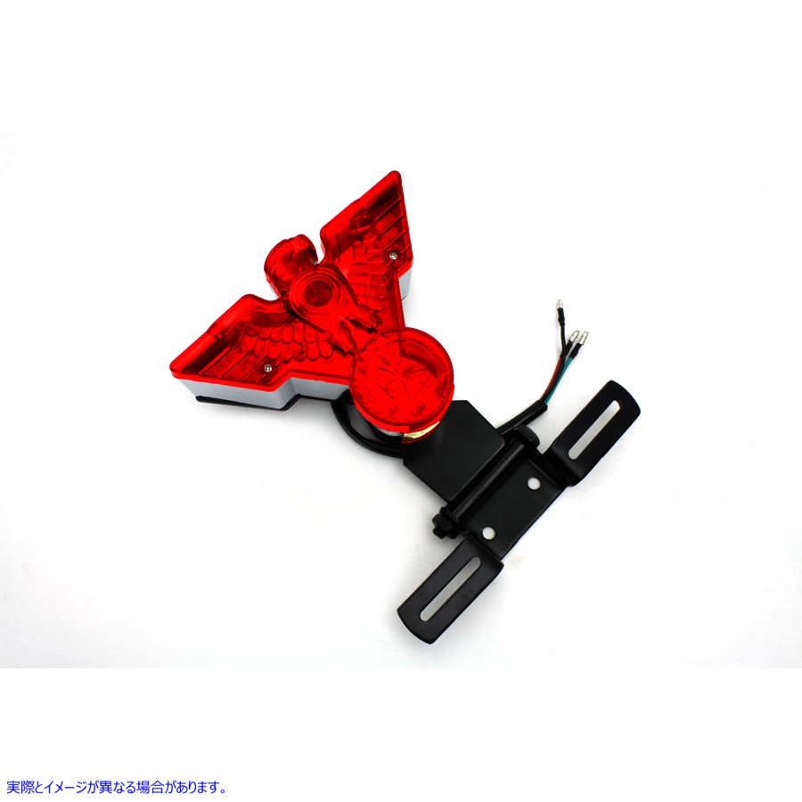 Warbird LED type tail lamp with red lens features chromed housing and black attached hinged license plate bracket. Lamp has LED array installed. *NOTE: For show or decorative use only not D.O.T. approved.