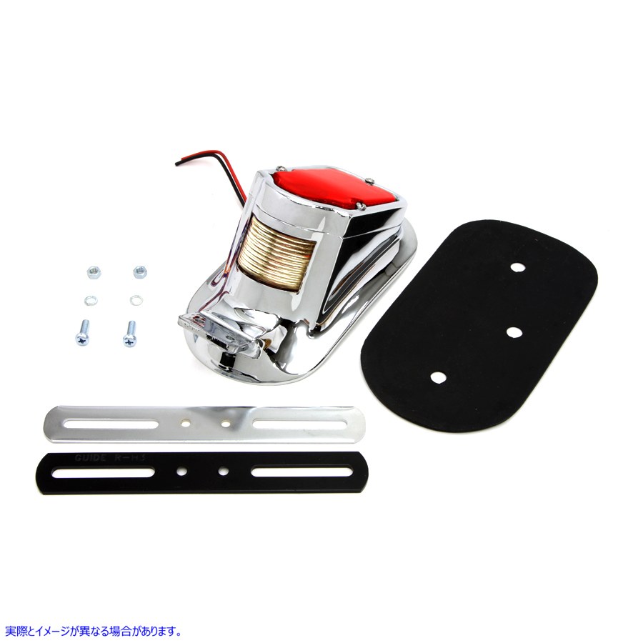 Chrome DieキャストTombstoneスタイルフェンダーマウントテールランプアセンブリは、クロムナンバープレートブラケットを備えていますが、追加のガラスレンズとブラックガイドブラケットも取り付けられていません。