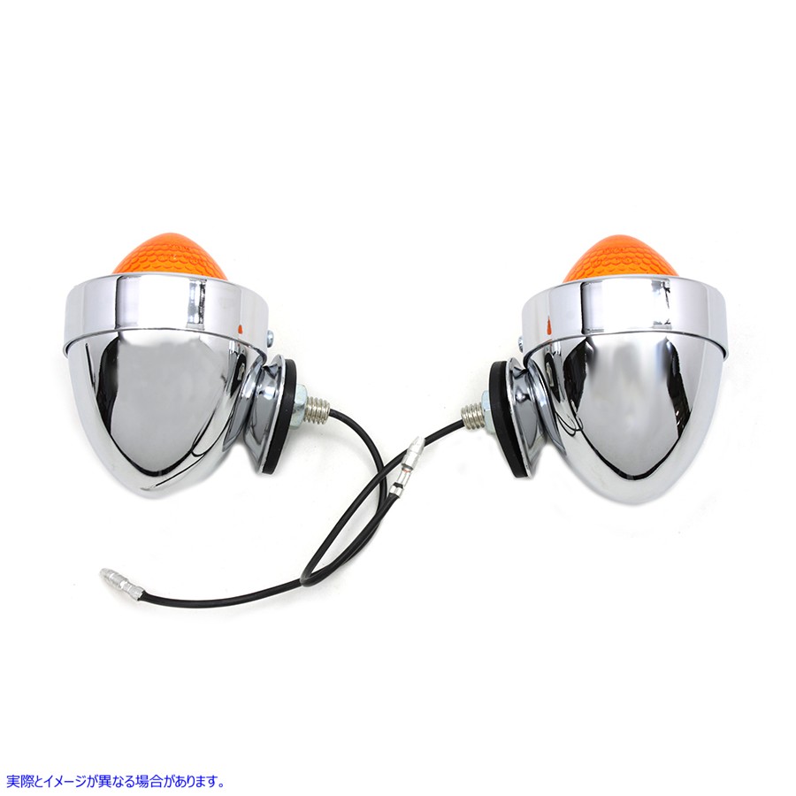 56mm弾丸12ボルトマーカーランプセットは、クロムハウジングを備えたアンバーレンズを特徴としています。