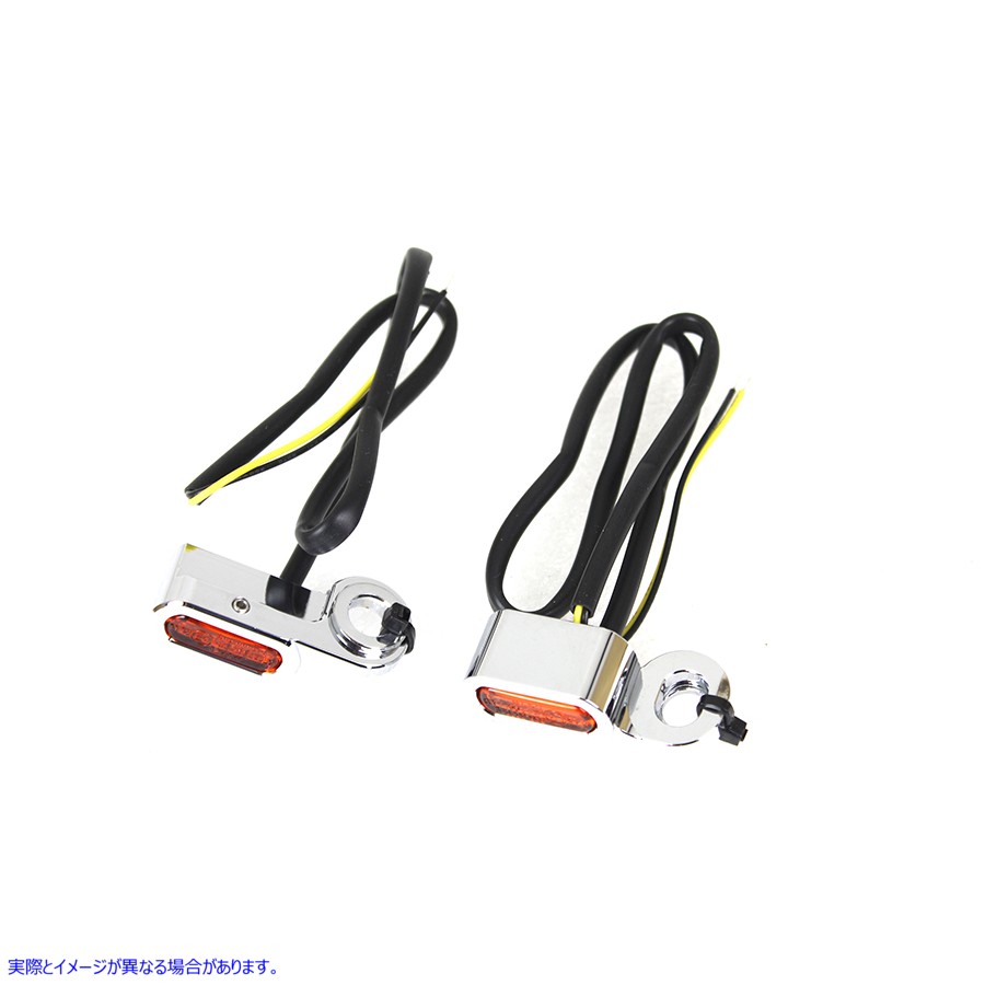 Chrome handlebar control LED turn signal set features amber lenses. *NOTE: Micro turn signal set mounts to mirror stem. Sold as a pair.