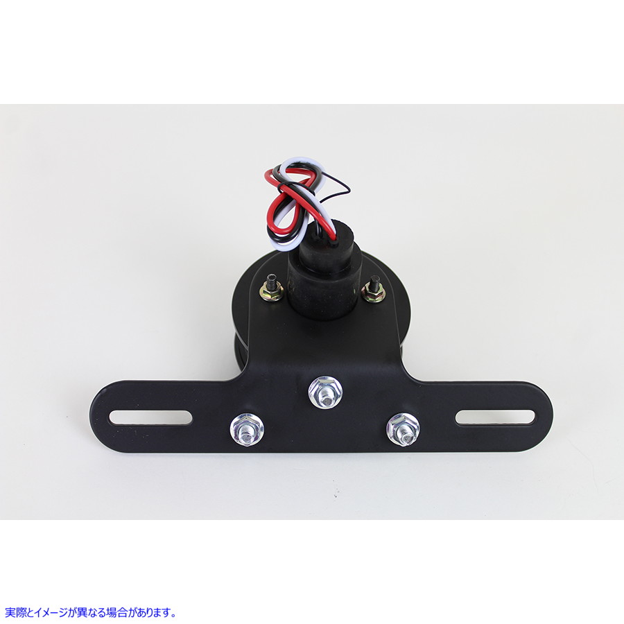 LEDテールランプアセンブリは、黒いアルミニウムビレットで構成されており、丸いスタイルが特徴です。アセンブリにはライセンスブラケットが含まれています。