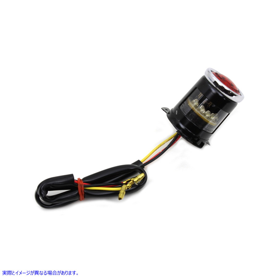 クロムリムと赤いレンズを備えた黒い丸1インチLEDテールランプ。