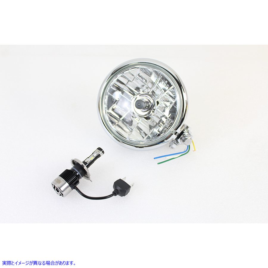 ベイツスタイル5-3/4インチのヘッドランプは、アイボルトを備えたクロムシェルと12ボルトLED H-4電球を備えています。