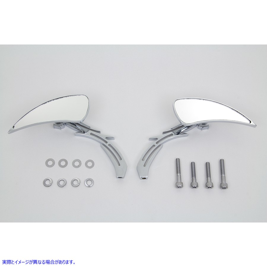 ビレットスカルステム付きクロームティアドロップミラーセット