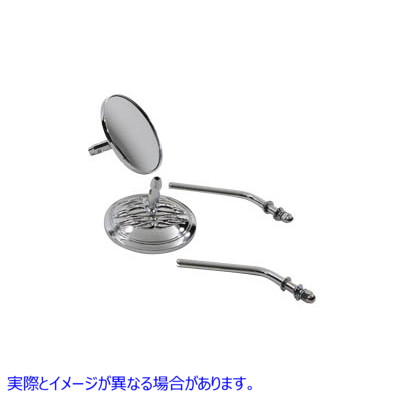 ラウンド フレーム ミラー セット クローム ラウンド ステム付き