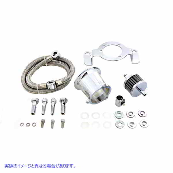 Chrome Velocity Stackキットには、2-1/2インチのChrome Stack Chrome Support Bracket Brearther Kitとステンレス鋼のホースが含まれています。