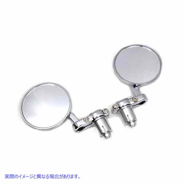 Chrome Cafe Style Mirror Setは、1インチのハンドルバーに簡単にインストールできるように作られた内部エンドバーアダプターを備えています。セットには、3インチを測定する左右のミラーが含まれます。