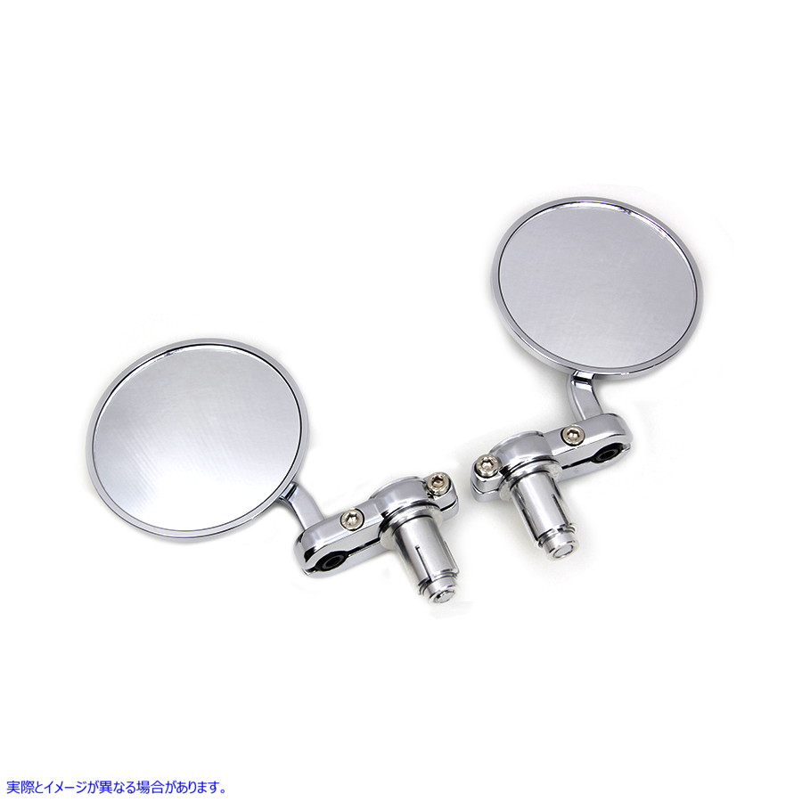 Chrome Cafe Style Mirror Setは、7/8インチのハンドルバーに簡単にインストールできるように作られた内部エンドバーアダプターを備えています。セットには、3インチを測定する左右のミラーが含まれます。