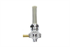 Natural alloy petcock has a 90° left outlet nut nylon filter screen washer rubber gasket and reserve position. For use with stock gas tanks or custom tanks with a 22mm outside thread. Designs are made for a seated position on the motorcycle with the hose outlet facing a direction to ease fuel line hookup.