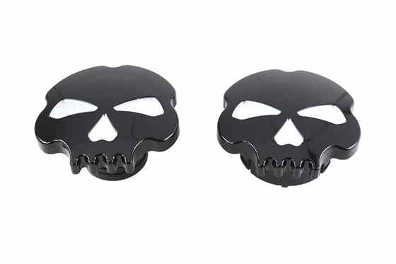 Vented and dummy gas cap set features a black finish with a skull design.