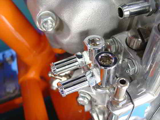 This chrome set features a 5/16 inch allen socket for easy installation and removal. Set also includes 1/8 inch NPT thread nipples. Sold as a set of 2. Accepts 1/8 inch NPT barbed oil line fittings for 3/8 inch inner diameter hose. Fittings can be replaced with tapered fittings for steel lines. Oil fitting facilitates installation of steel oil lines on billet oil pumps both Sifton and S&S. Accepts 5/16 inch allen wrench.
