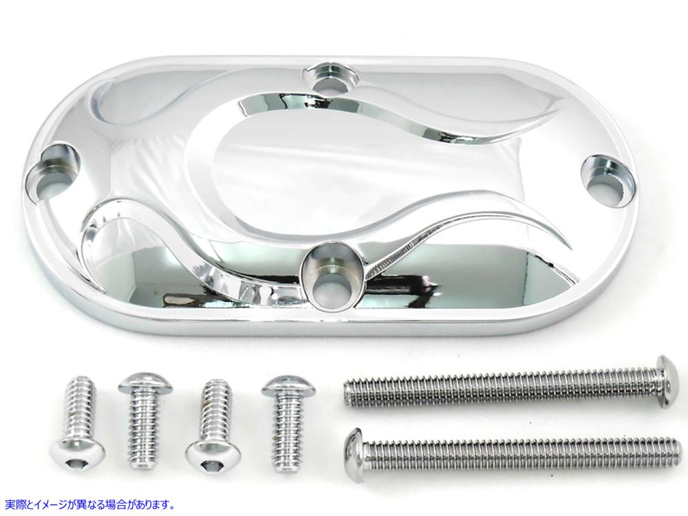 Chrome inspection cover with chrome flame. Screws not included.