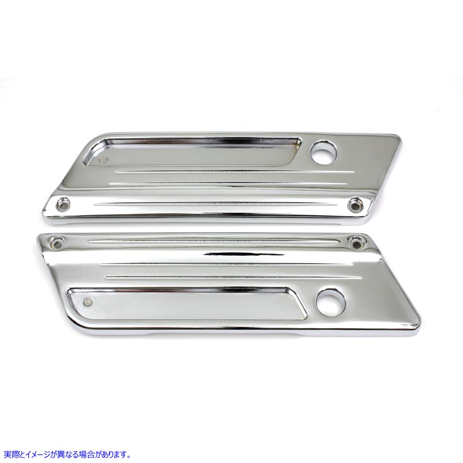 クロムフェイスプレートセットは、サドルバッグラッチの右側と左側用で、スピードラインデザインが備わっています。