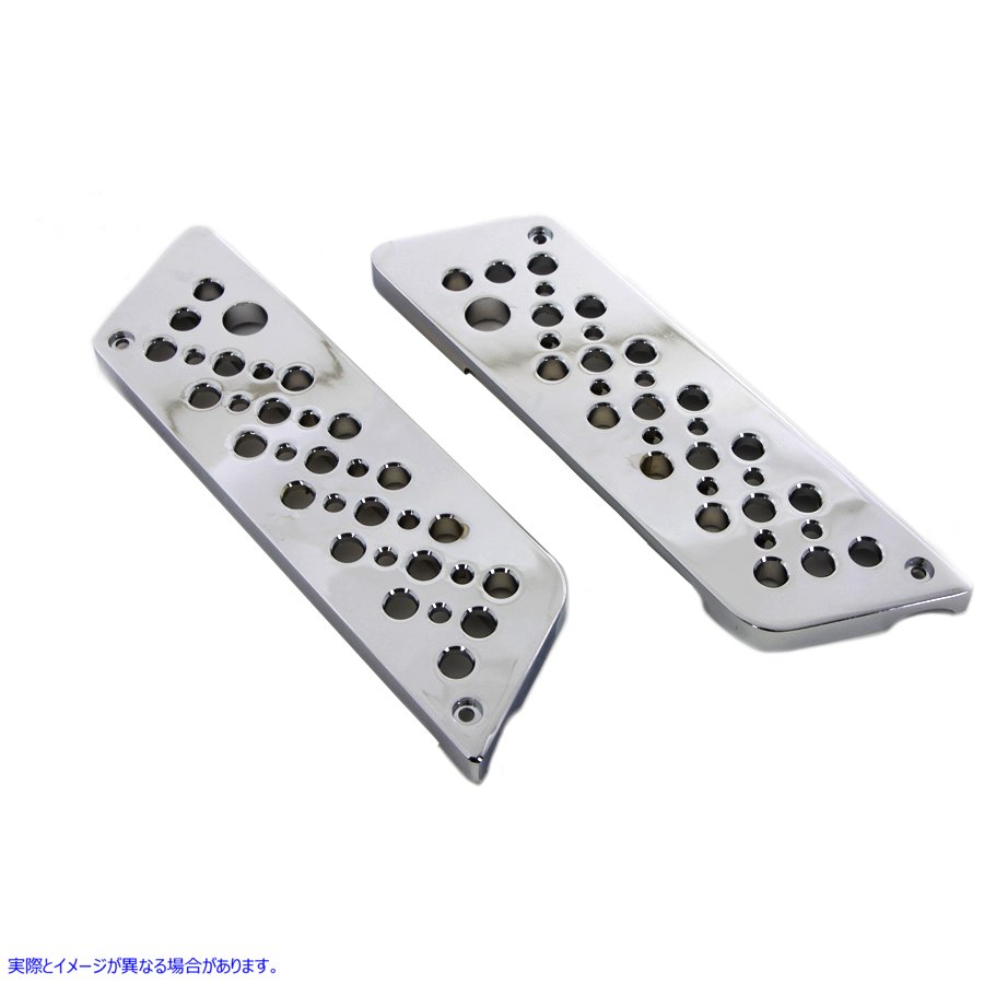 クロム仕上げのスイスチーズサドルバッグラッチカバーセットは、右側と左側で使用します。