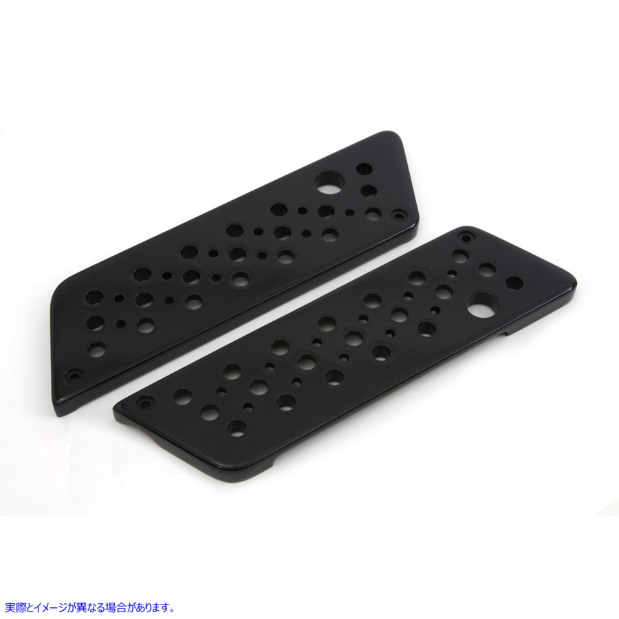 Swiss cheese saddlebag latch cover set with black finish.