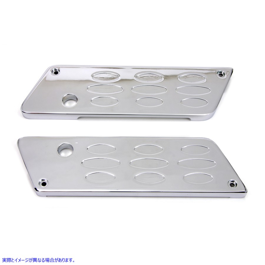クロム仕上げのルーバーサドルバッグラッチカバーセット。