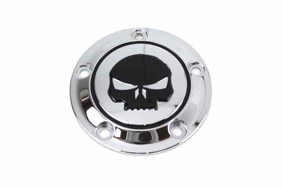 Ignition points cover is the 5-hole style featuring a chrome finish with a skull design.