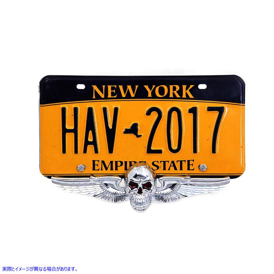 赤い塗装された目を備えたクロムスカルウィングオーナメントは、ナンバープレートフレームにキャラクターを追加できます。