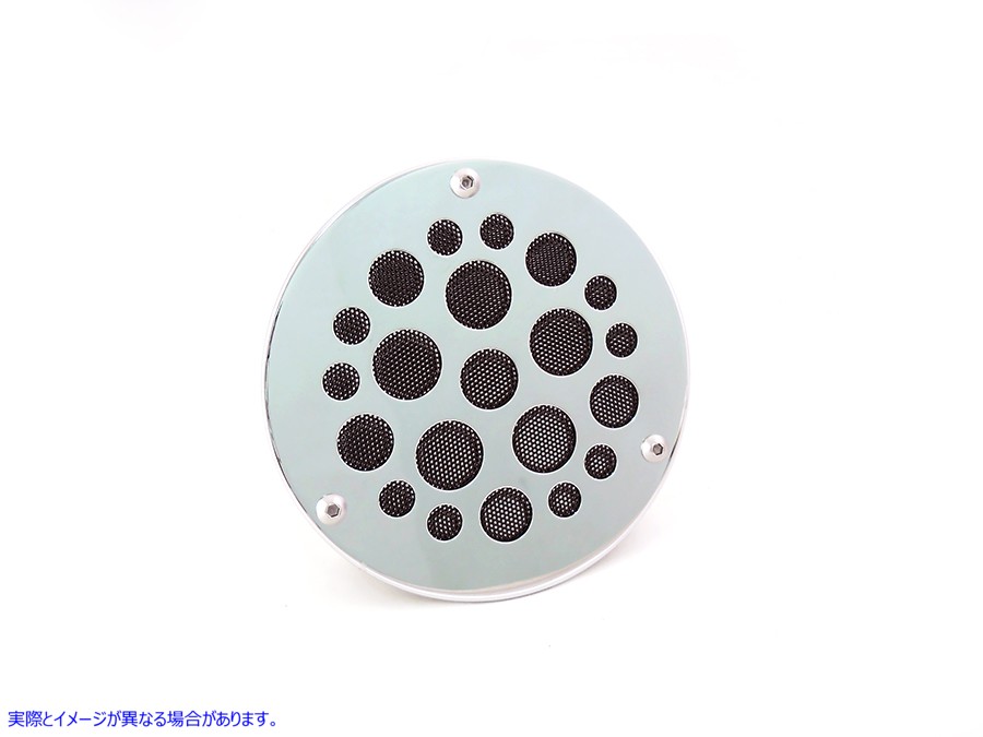 Chrome steel with black mesh 3 hole outer primary derby cover. *NOTE: It's closed behind the mesh.