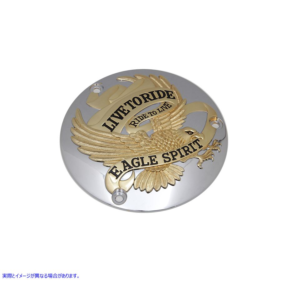 Gold inlay eagle spirit derby cover with 3 holes. Order gaskets and screws separately. Screws not included.