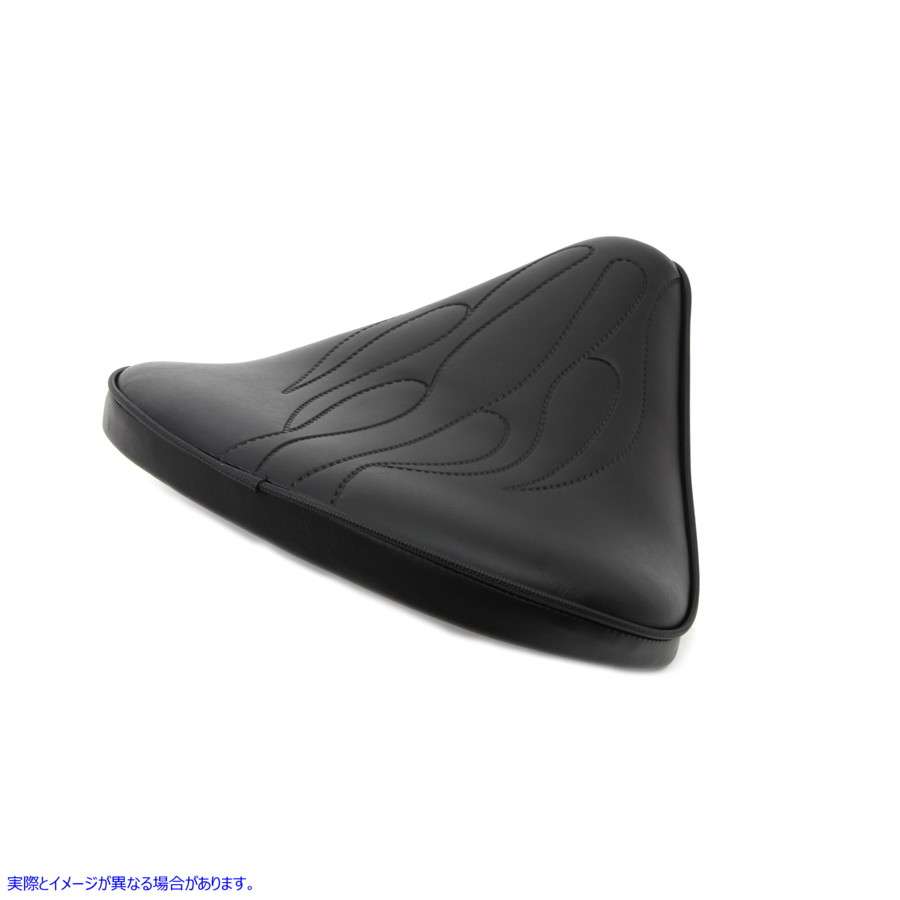 黒いビニールで作られた炎のステッチ付きのソロシート。