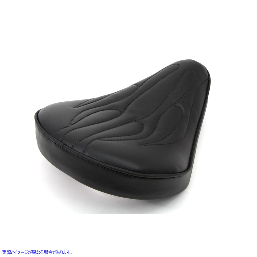 炎のステッチ付きの黒いソロシート。シートの長さは12-1/2インチです。