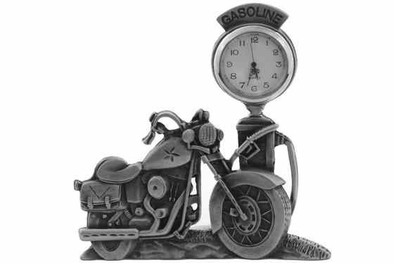 シルバーパティーナ仕上げのピューターオートバイ時計。