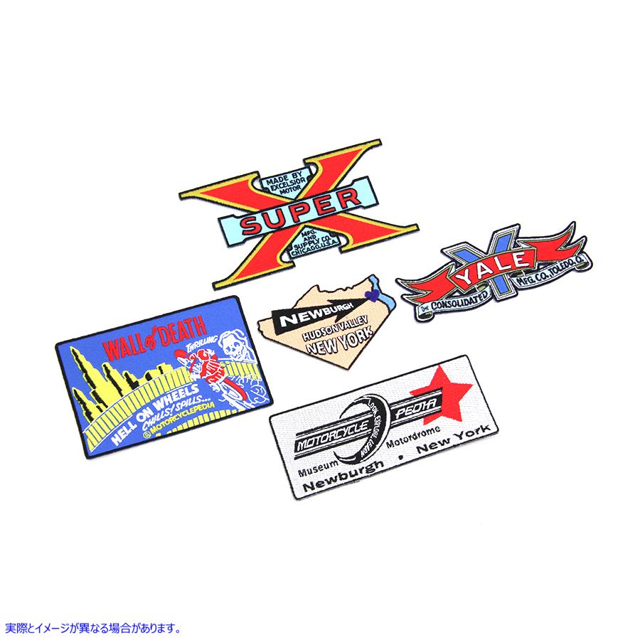 Series 12 cloth patch set features 5 patches. This set includes a Motorcyclepedia Museum Newburgh New York Wall of Death Super X and Yale patch. Patches can easily be ironed or sewn on. NOTE: When using an electric iron to apply the patches to clothing NEVER use steam. Patch may be sewn on after being attached with it's adhesive.