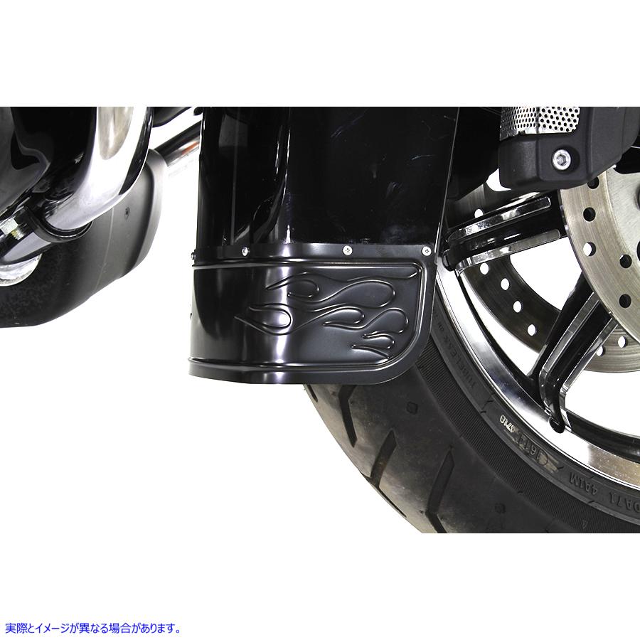 ブラックフロントフェンダーのヒントは、鋼の構造と炎のデザインを特徴としています。