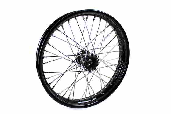 18 inch x 2.25 inch VL front or rear wheel assembly includes a black rim nickel plated spokes and nipples and a parkerized hub laced and trued. *NOTE: Includes sealed bearing and lock nut. *Note: UPS may consider this part as packaged inchoversize inch for shipment as compared to the actual weight which will result in higher shipping costs.
