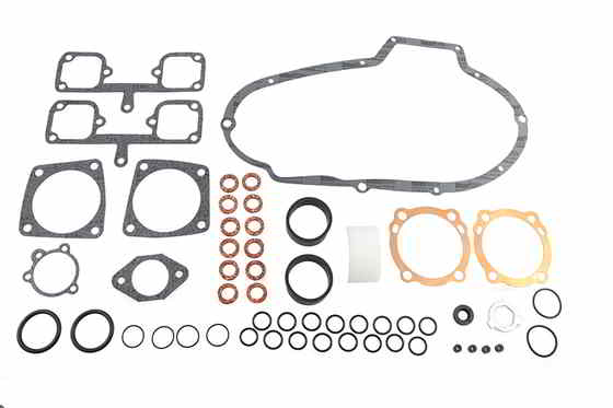 XL top end gasket kit includes primary gasket. Top end and primary gasket kit includes tappet guide o-ring pushrod over upper o-ring cylinder head gasket cylinder base gasket rover cover gasket cork pushrod cover small seal carburetor flange gasket intake manifild seal air cleaner mount gasket rocker line oiler seal v-2 middle pushrod o-ring and rocker arm o-ring. The primary gasket kit includes the nylon primary chain pad clutch hub lock tab primary filler o-ring shifter shaft seal and the primary cover gasket.