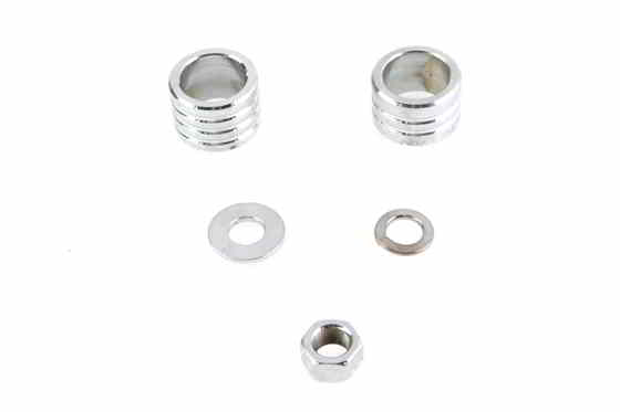 Chrome Grove Styleフロントアクスルスペーサーキットには、左サイドの0.890インチの長さのスペーサーと、右側の右側のスペーサーが.970インチが付属しています。スペーサーの内径は1インチです。ワッシャーとナットは、1インチの車軸で使用するために含まれています。